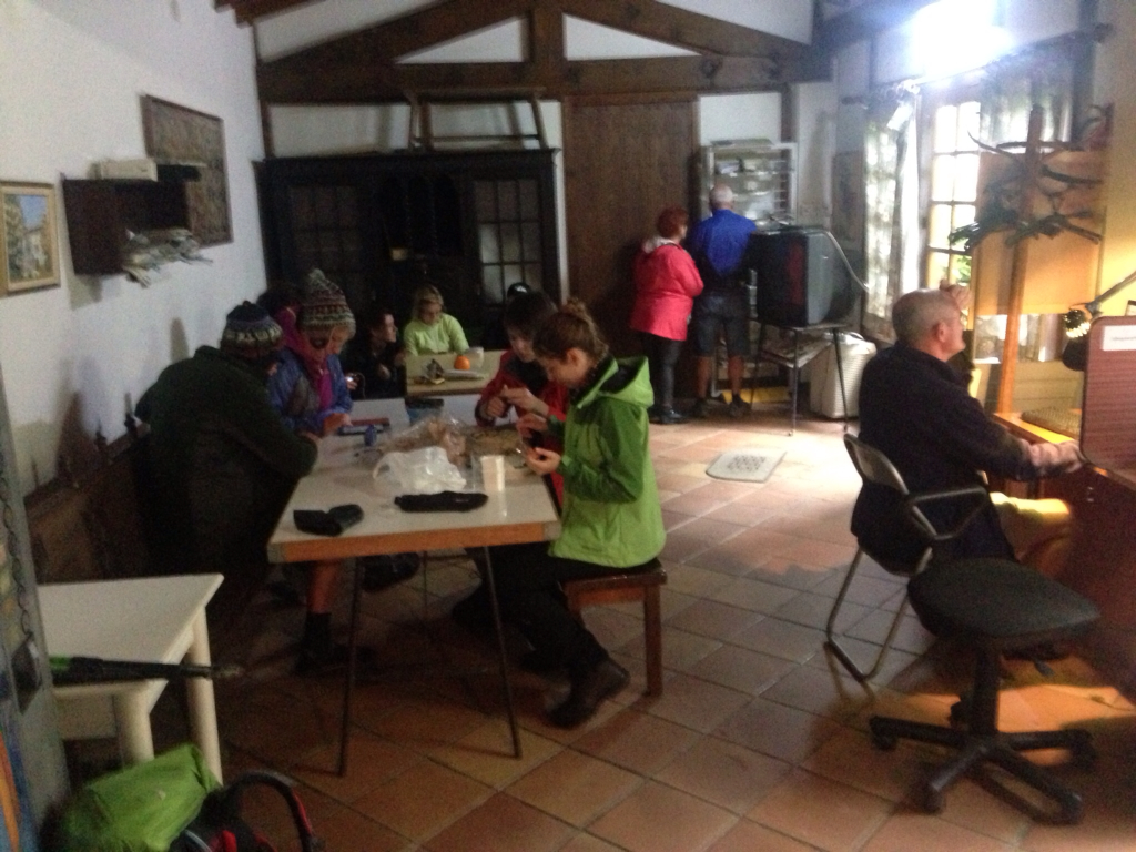 Then we went back to the community room at the albergue since there are enough people in here with some cooking to keep it warm. Also good social time.