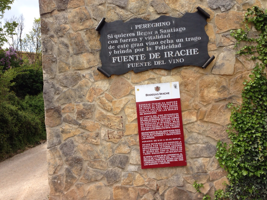 Soon after Estella we passed a Fuente del Vino - the wine fountain. Across the road from an old monastery is a fountain with 2 taps. One gives water and the other red wine. All free and available for the passers-by. The wine is supplied by the wine processing plant next to it. We were happy to sample it and fill a bottle we had with us for consumption later. It was excellent. Soon after we stopped in a monastery garden and ate our sandwiches. There was a cold wind and the sun was sometimes behind the clouds so it was not very comfortable.